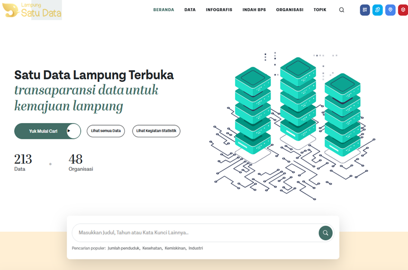 Portal transparansi data dan informasi publik bagi warga Lampung. Siapa saja bisa jelajahi dan dapatkan koleksi dataset terbuka dari Organisasi Perangkat Daerah di Lampung di sini. Cari, temukan, unduh—bebas birokrasi!